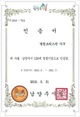 남양주시 100대명품기업인증서